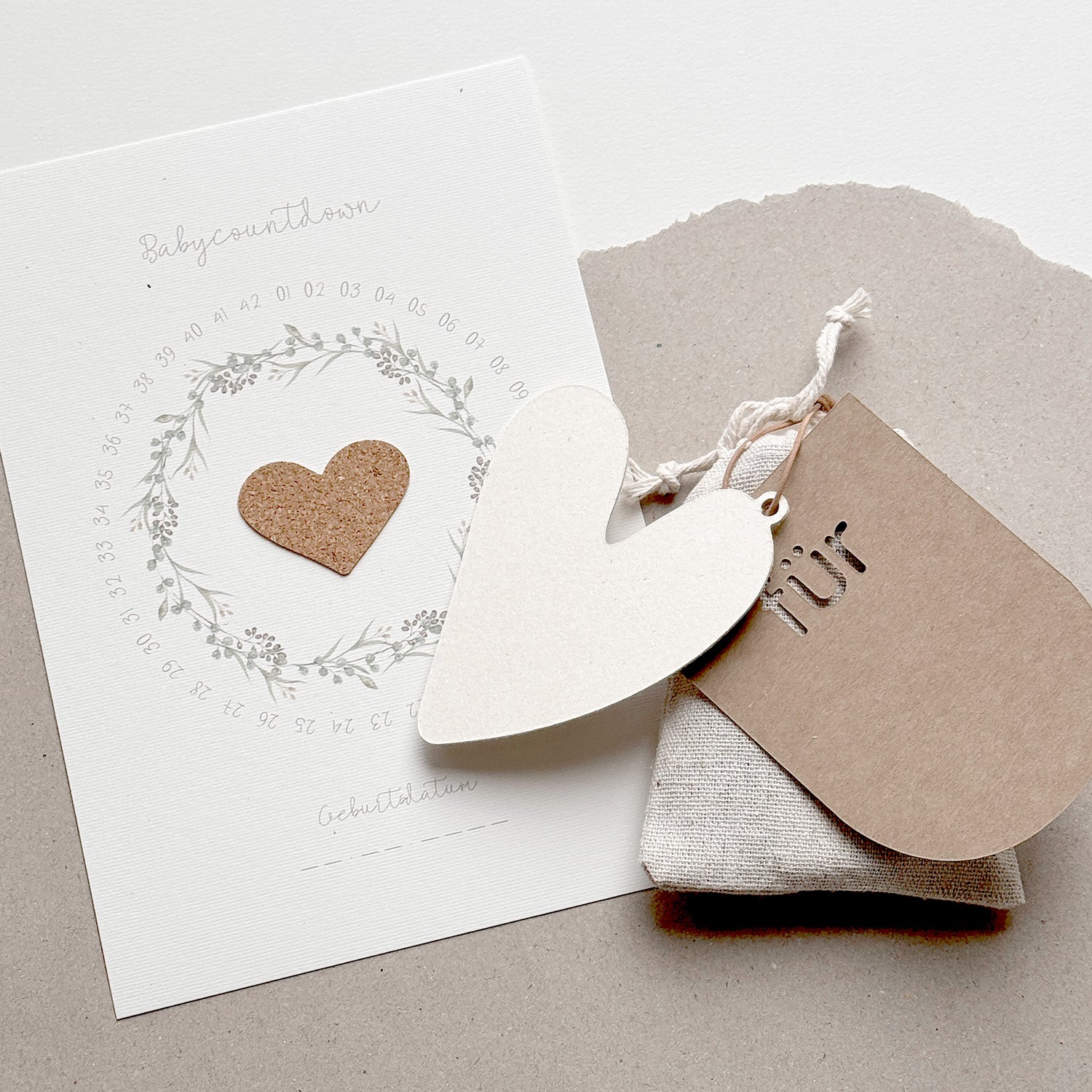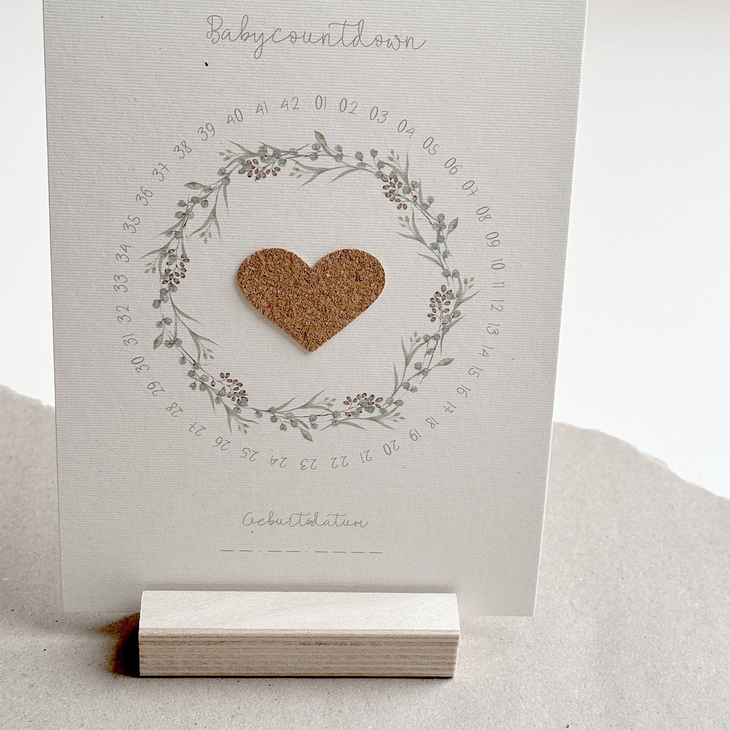 Mit dem passenden Holzaufsteller und dem liebevoll gestalteten Anhänger, wird dieser Babycountdown zu einem wundervollen Geschenk zur Schwangerschaft.