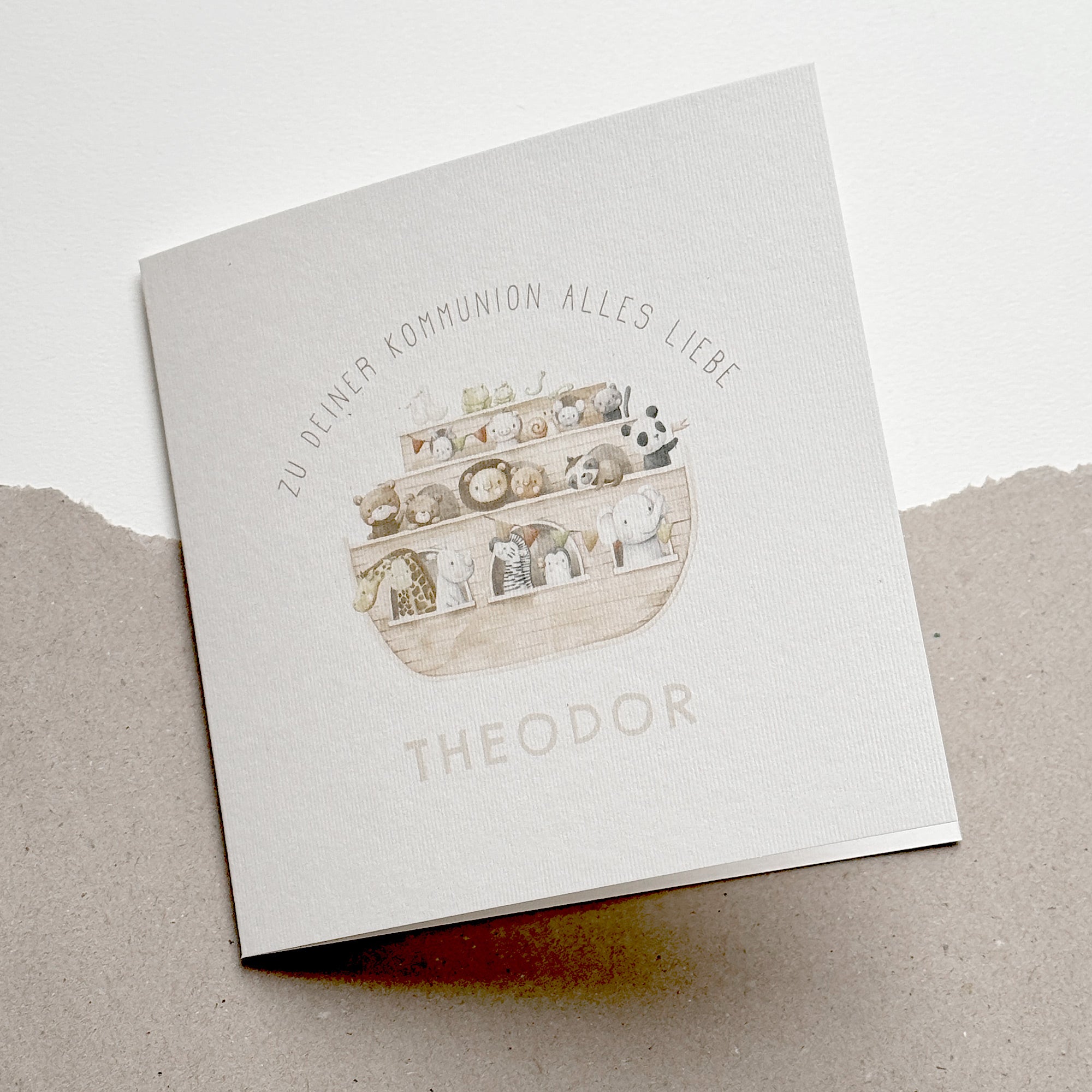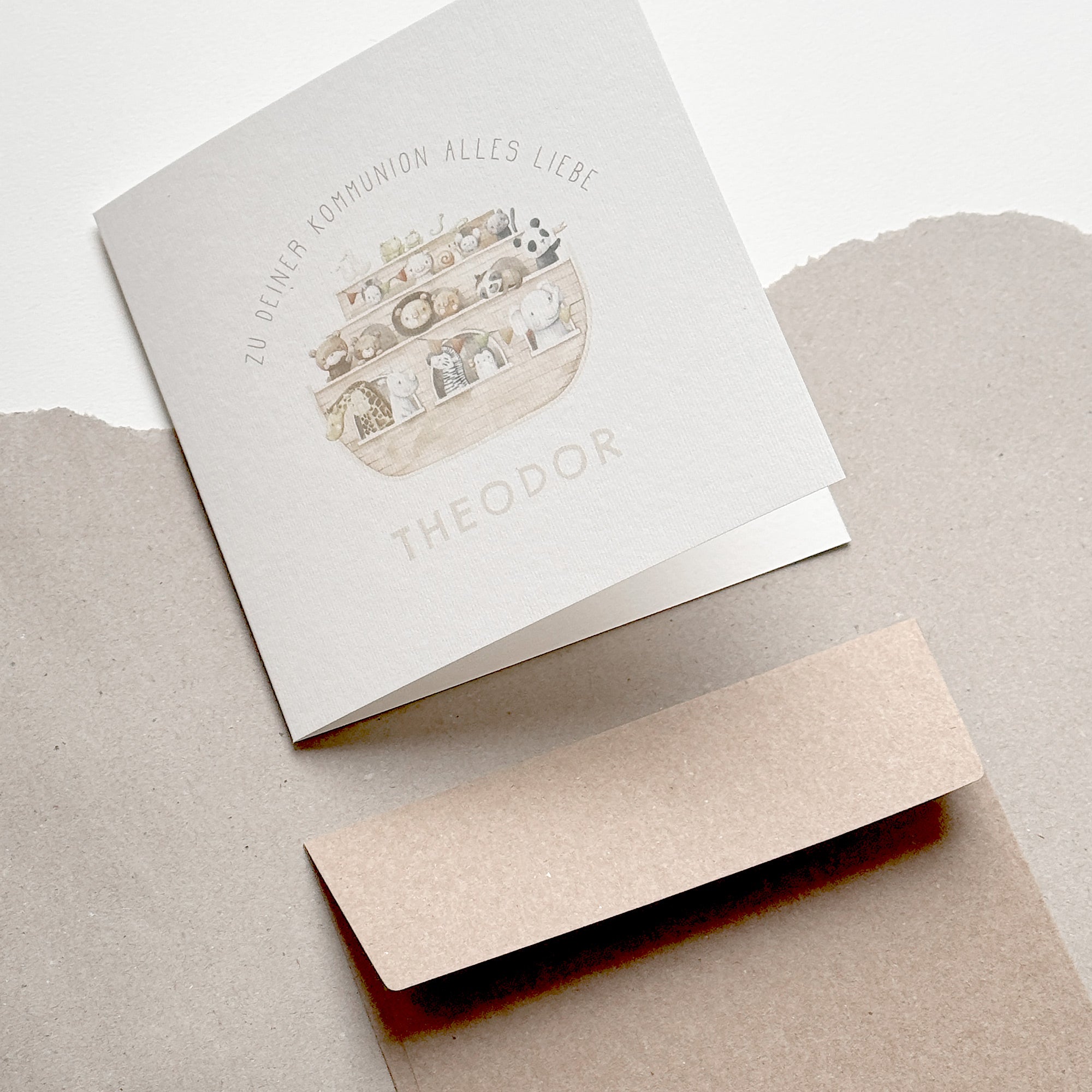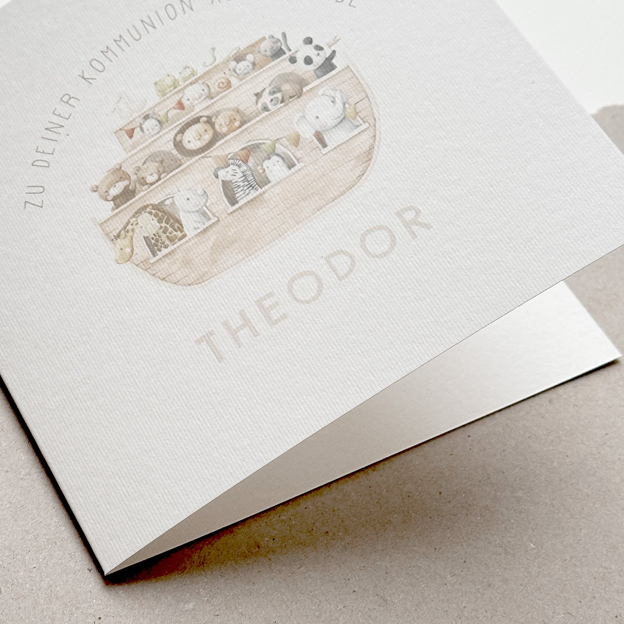 Eine wunderschöne personalisierbare Glückwunschkarte für den besonderen Tag der Kommunion.