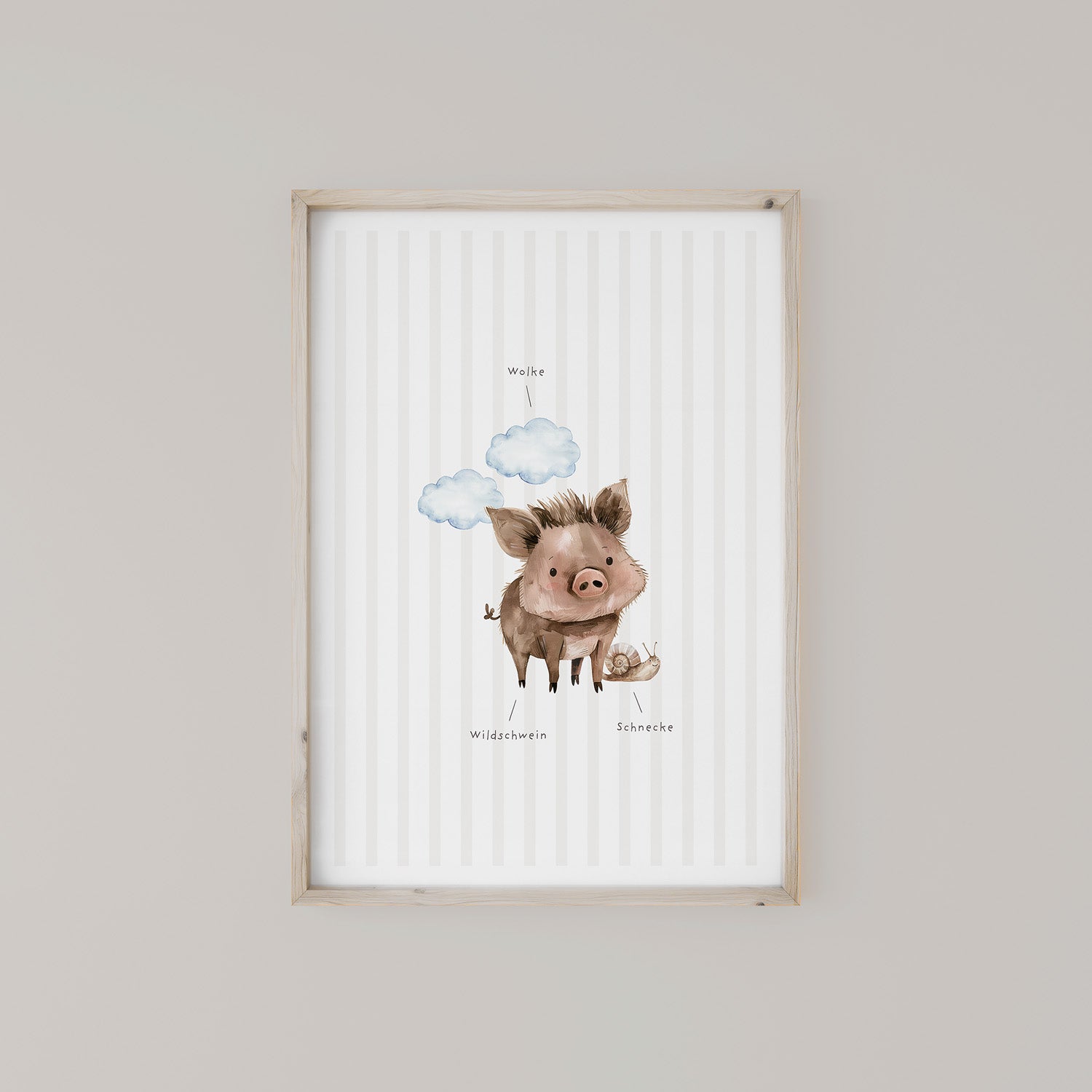 Dieses niedliche Wandbild verschönert nicht nur das Kinderzimmer oder den Spielbereich sondern lädt zum entdecken und lernen ein. Eine liebevolle Illustration auf hochwertigem Papier, die bis ins Schulalter Freude bereitet.